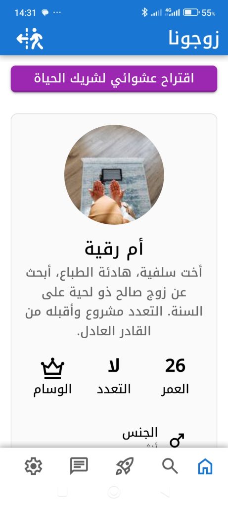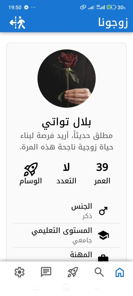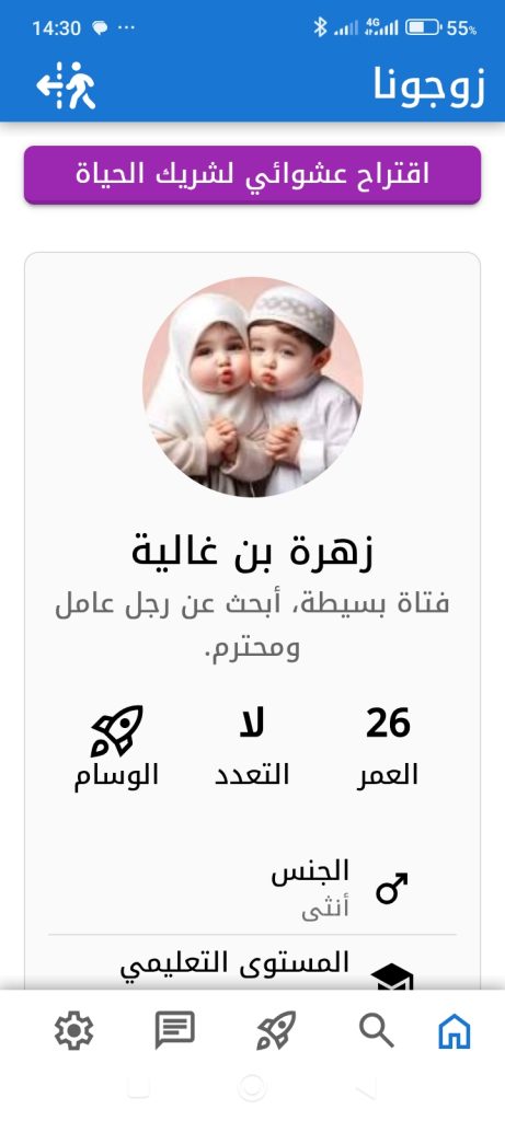 اطّلع على صور حقيقية من داخل تطبيق “زوجونا” لتكتشف واجهته البسيطة وتصميمه المريح. صُمم التطبيق ليمنحك تجربة استخدام سلسة وآمنة، تساعدك في رحلة البحث الجاد عن شريك الحياة بكل خصوصية وثقة.